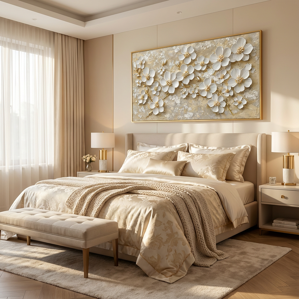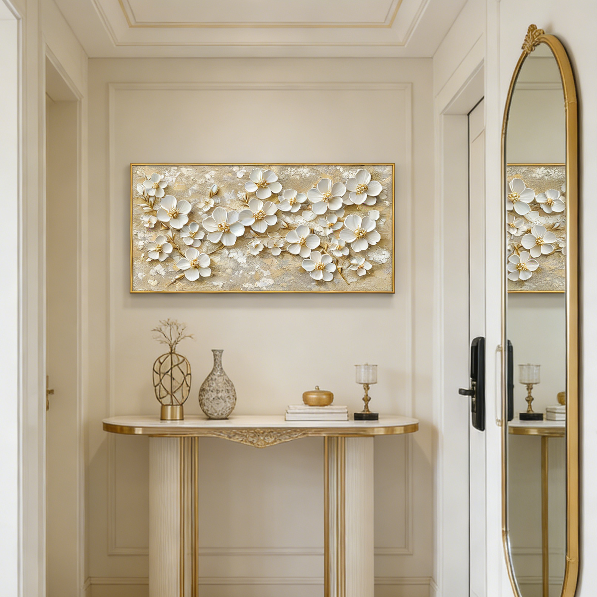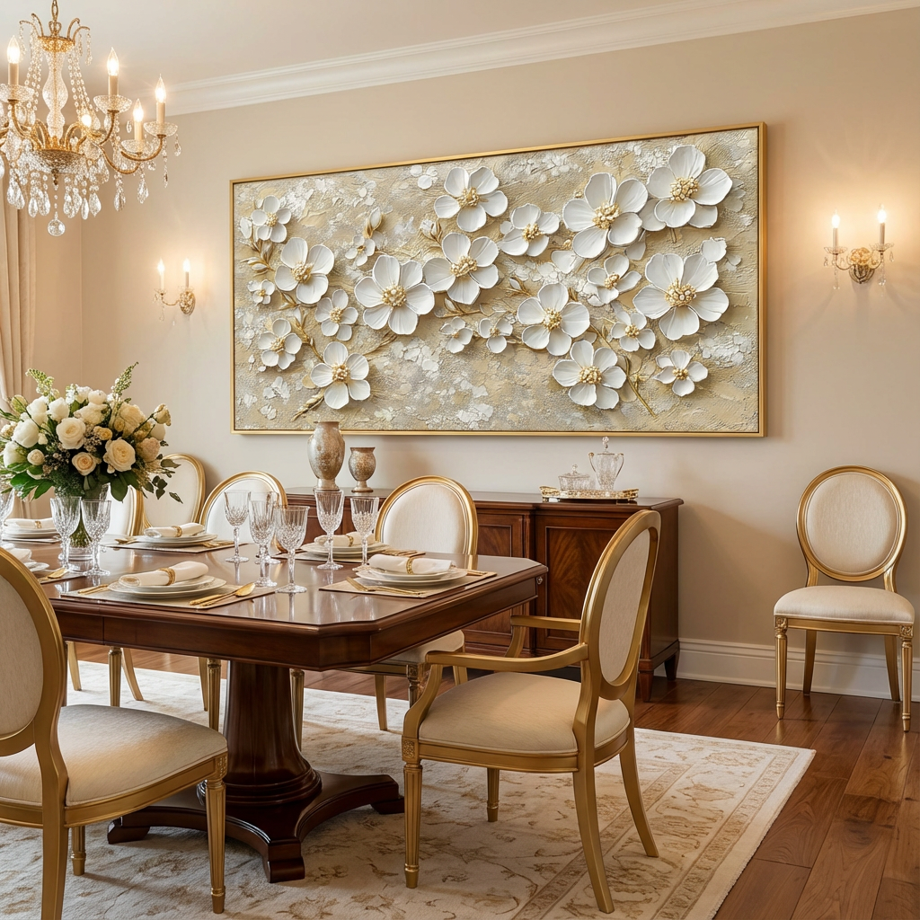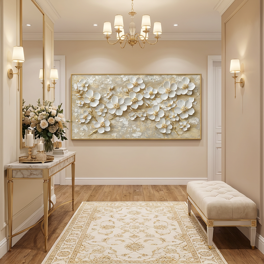 Perfect for lovers of luxury floral relief art, this piece also stands out as a sophisticated gold-accent wall painting, ideal for modern, classic, or boutique-style interiors.