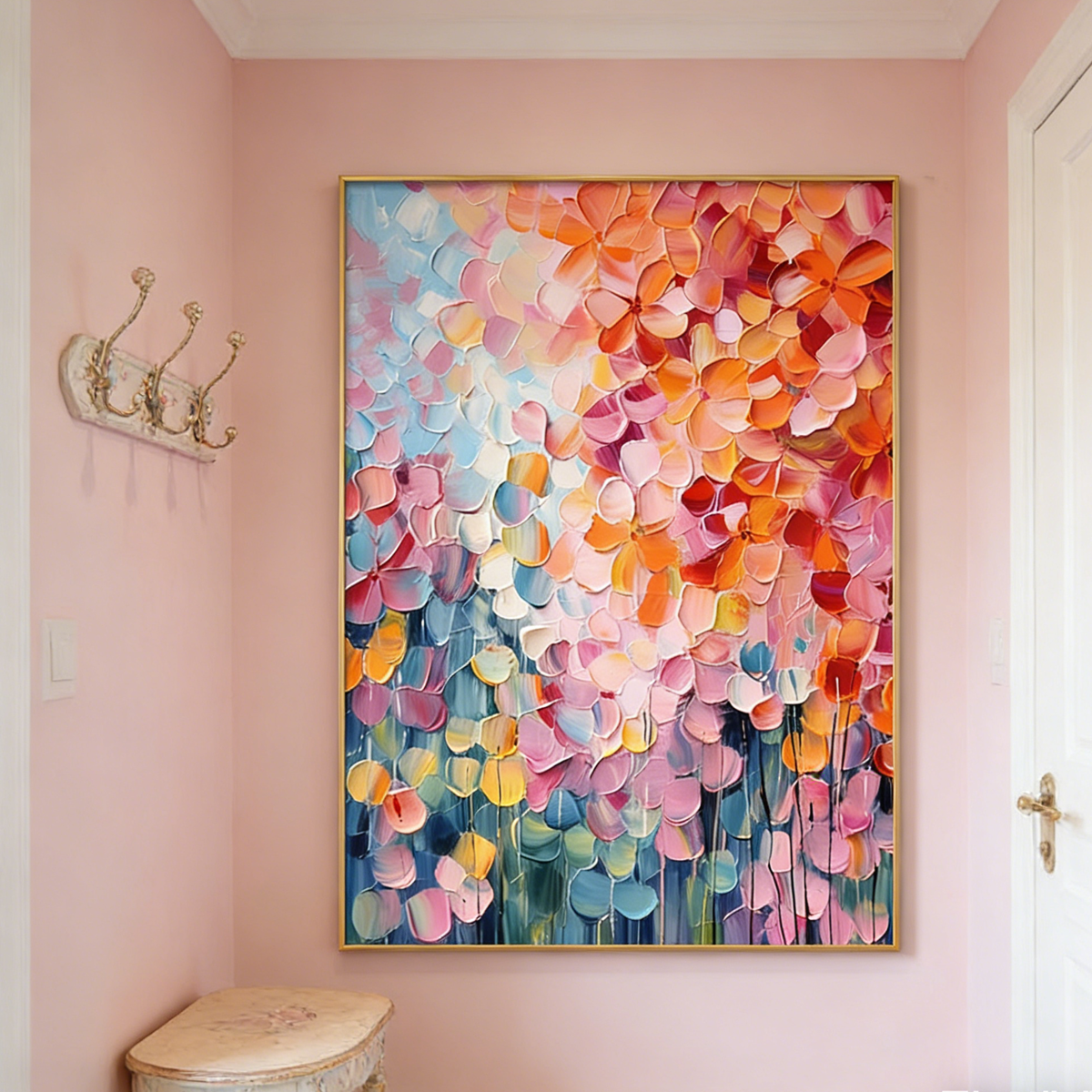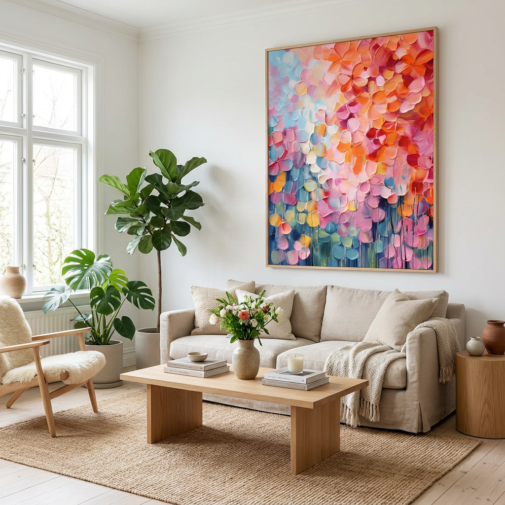 Designed for lovers of palette knife floral art, this piece also works beautifully as a color-rich abstract wall decor, bringing warmth, joy, and contemporary elegance to living rooms, bedrooms, or creative spaces.