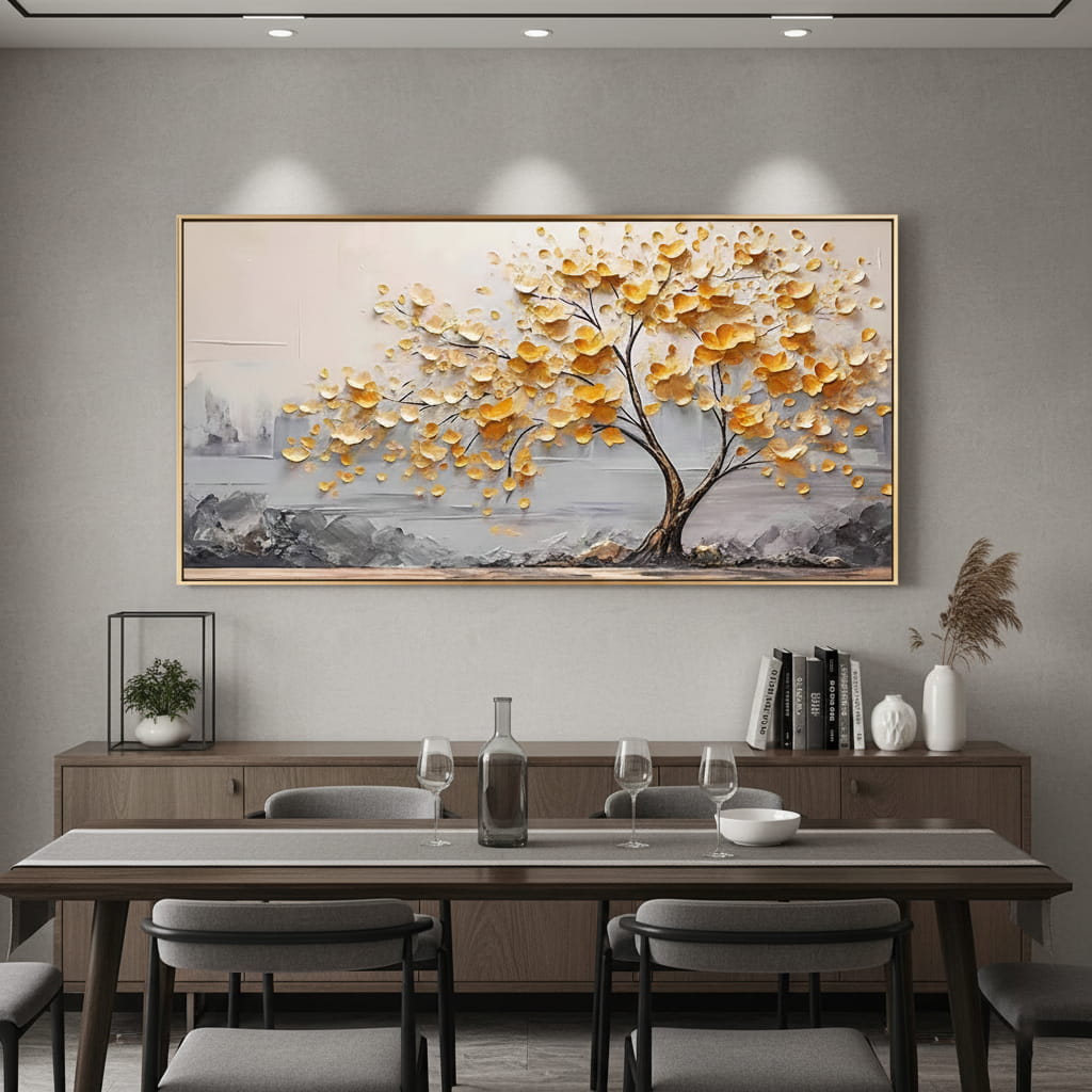 Amber Petals – Textured Tree Hand-Painted Oil Painting