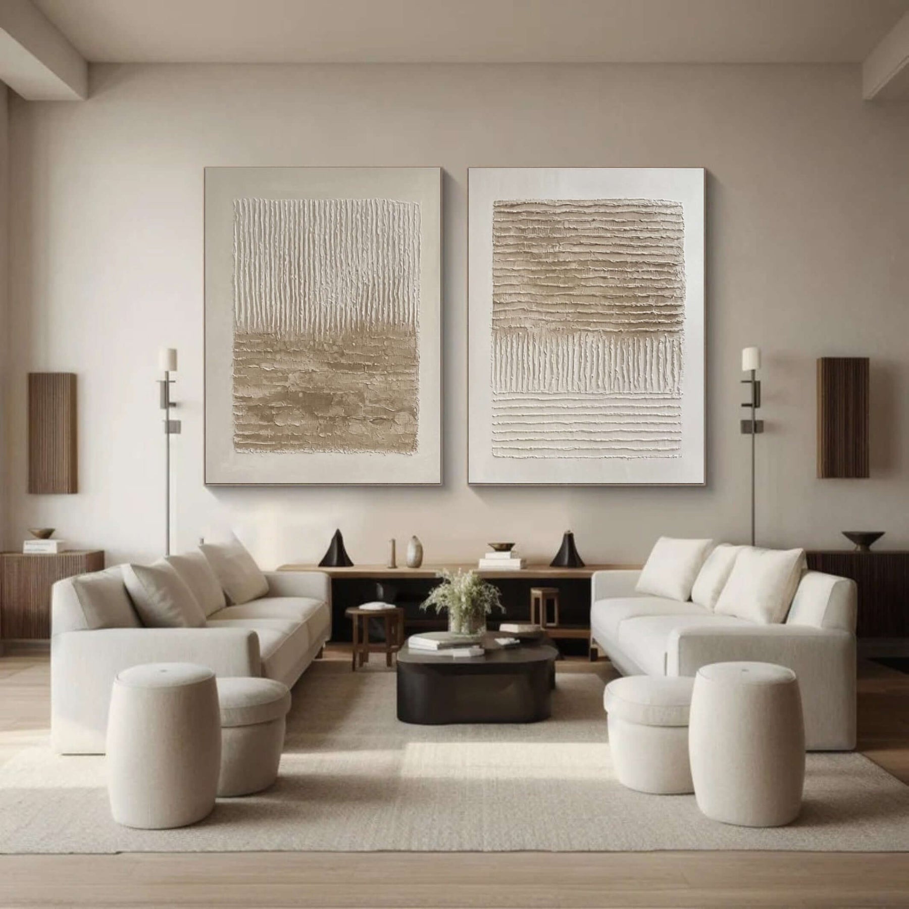 This minimalist 100% Pure Hand-Painted Original Oil Painting set embodies the Wabi-Sabi ethos with profound texture. The structured vertical and horizontal patterns create Kinetic Lines in rich Terracotta Impasto. This guaranteed Hand-Painted Oil Painting set adds quiet, earthy luxury and sophisticated textural depth to a modern living space.