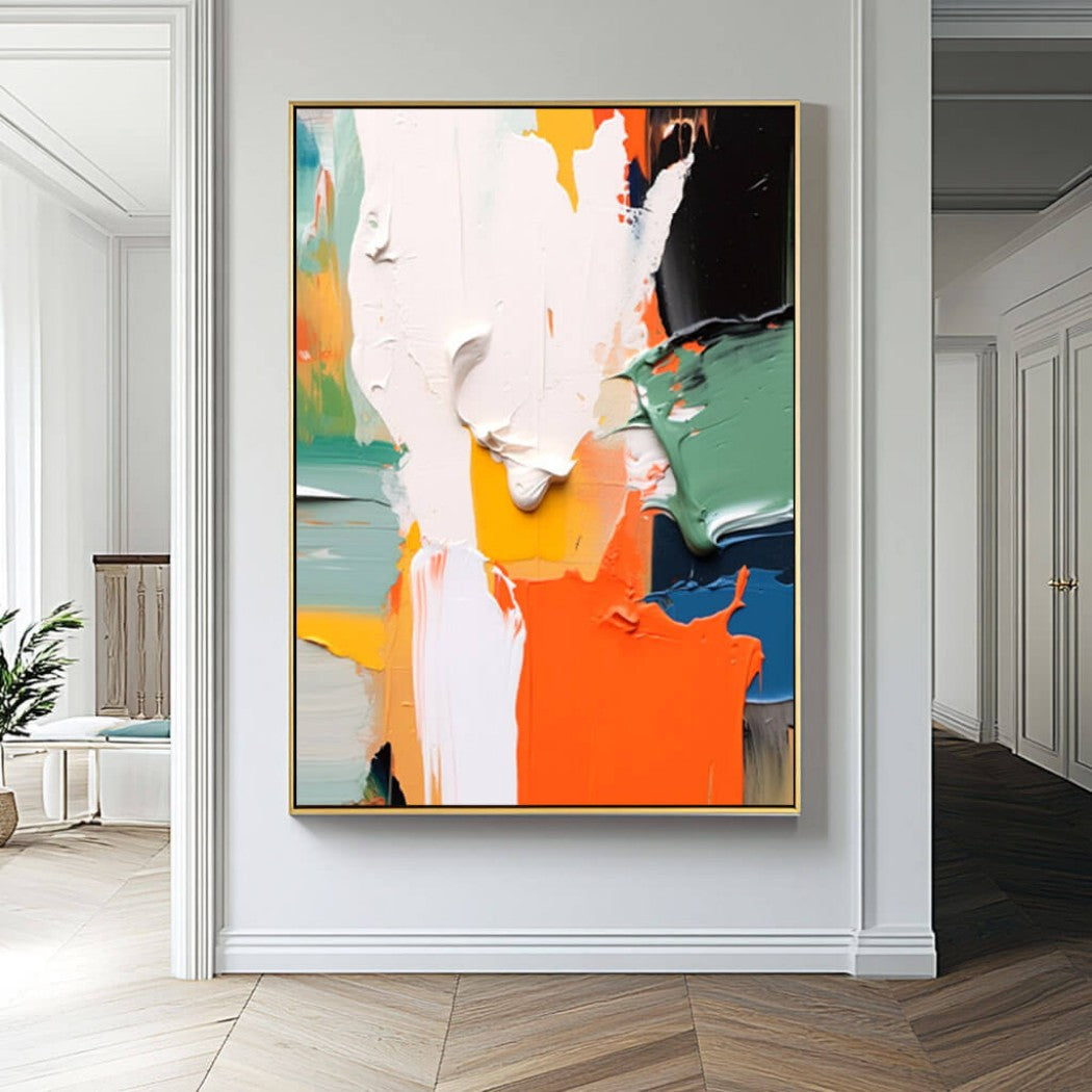 This vibrant 100% Pure Hand-Painted Original Oil Painting is a dynamic study in texture and contrast. Bold slabs of orange, white, and deep blues, created with the Palette Slice technique, stand in high relief, forming a compelling Chromatic Sculpture. This guaranteed Hand-Painted Oil Painting is a high-energy statement piece, perfect for infusing modern spaces with dramatic color and three-dimensional art.